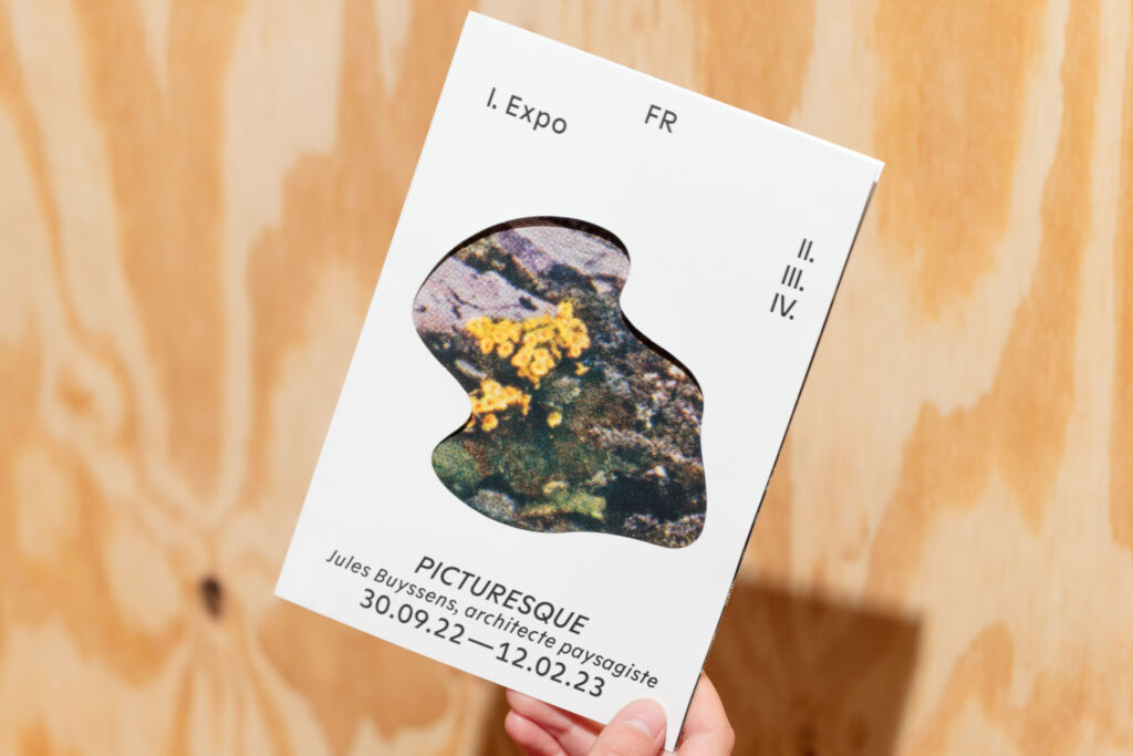For this exhibition “Picturesque”, we created a form inspired by the curves and the return to the wild of Buyssens’s work, as a key visual for the exhibition communication supports. This shape also refers to the Japanese steps that are very present in his landscaping.